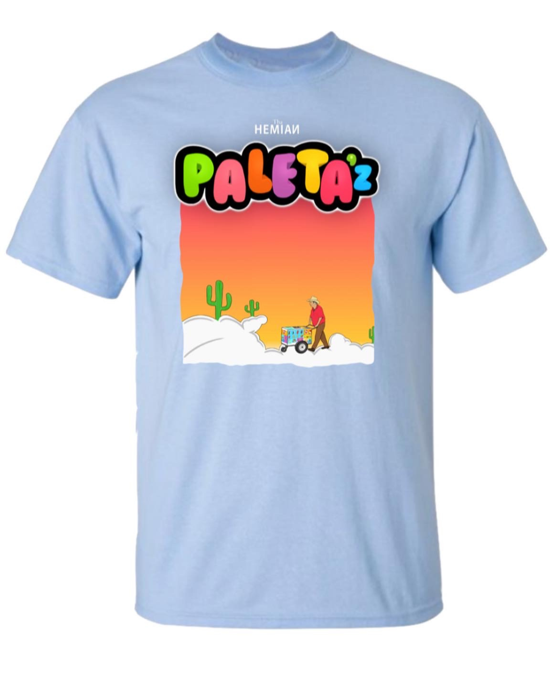 Inspired by the tradition of the paletero. Set against a dreamy landscape of clouds and cacti.